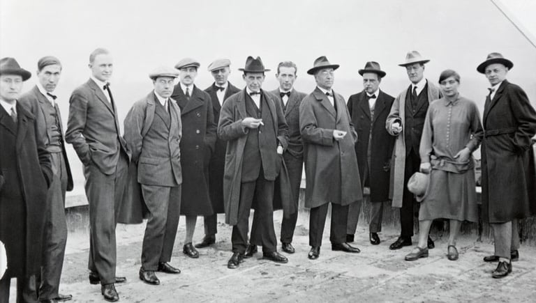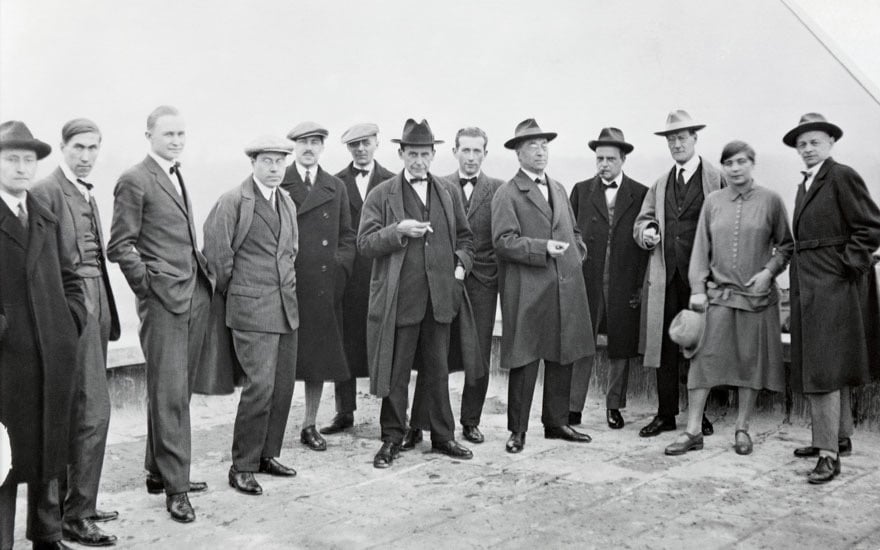 包浩斯藝術家合照,左三為喬治· 莫奇(Georg Muche, 1895~1987),圖片來源:網路資料