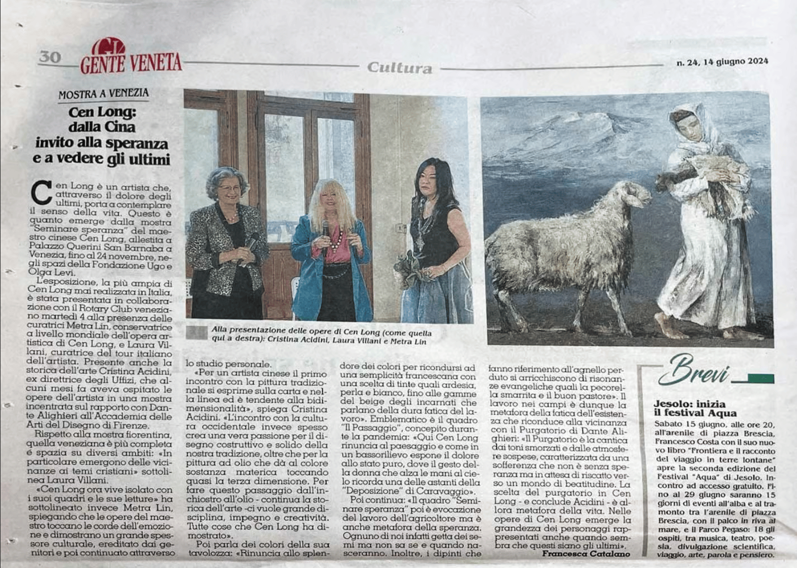 Cen Long è un artista che, attraverso il dolore degli ultimi, porta a contemplare il senso della vita. Questo è quanto emerge dalla mostra "Seminare Speranza" del maestro cinese Cen Long, allestita a Palazzo Querini San Barnaba a Venezia, fino al 24 Novembre, negli spazi della Fondazione Ugo e Olga Levi.