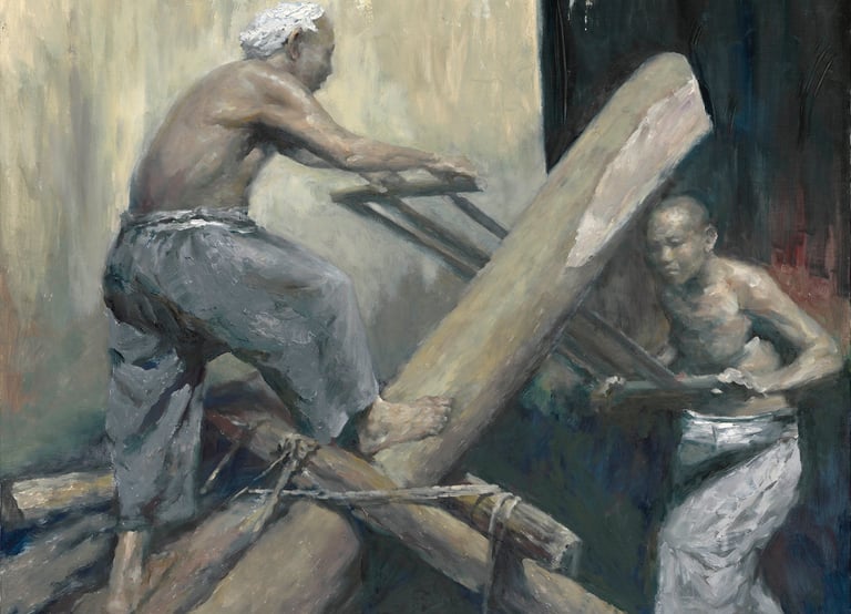 Cen Long,< The Workshop >,Oil on Canvas,120x120cm,2019