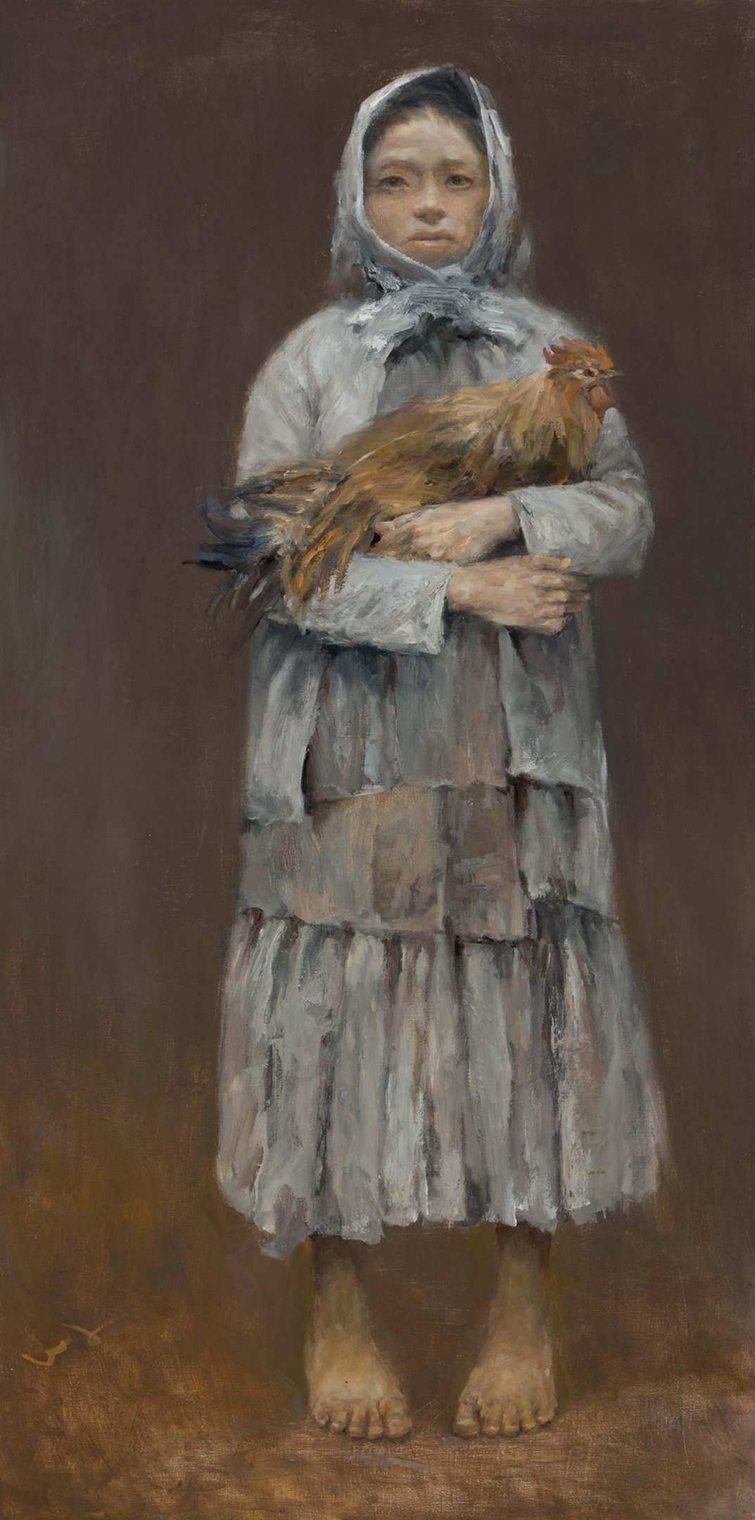 岑龍,么妹子,油彩・畫布,100x50cm,2014。