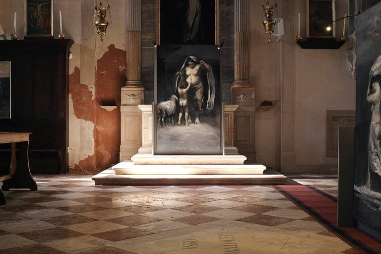註:位於威尼斯的馬爾他聖若望教堂,是以「耶路撒冷聖若望醫療騎士團(Order of Saint John, Order of Hospitallers, Knights Hospitaller)」之名所建立。該騎士團以簡樸處世、救助貧苦、提供人道醫療為創立忠旨。且在義大利所有的教堂租借,都需要通過宗教及文化機關的審核。該教堂原先並非公眾開放空間,與涵藝術的合作是該處首次舉辦的視覺藝術展覽。