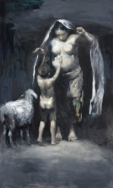 「生命的昇華」更加地回歸到人類行為的本質的探究,包含了善良與愛,並藉此讓生命和靈魂得以慰藉、昇華,如在作品〈蒼穹星光〉中所描繪了一位黑夜星光,找尋歸途的牧羊女之形象,其實就是藉由星光的符號,來象徵著人類原始的初心。