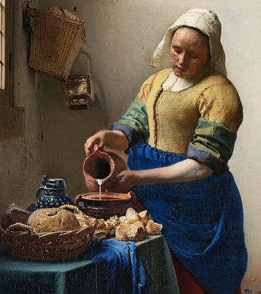 光,並沒有停在那一個瞬間,而是持續照耀、緩緩得流動著,讓觀者在凝視中與時間一同呼吸。這,就是維梅爾的魅力,他的作品總是看似平凡,但捕捉的其實不只是「靜」,而是時間的「延續」。在《倒牛奶的女僕》當中,我再一次感受到了藝術的永恆價值。