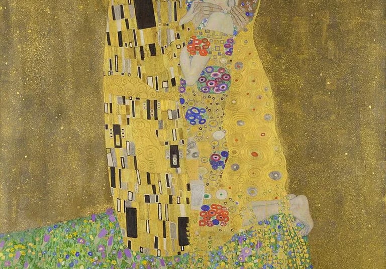 講到愛情,最直接的經典繪畫應該是克林姆(Gustav Klimt, 1862–1918 )這一幅<吻>(The Kiss, 1907–1908)了。