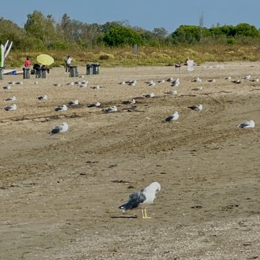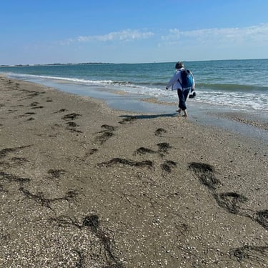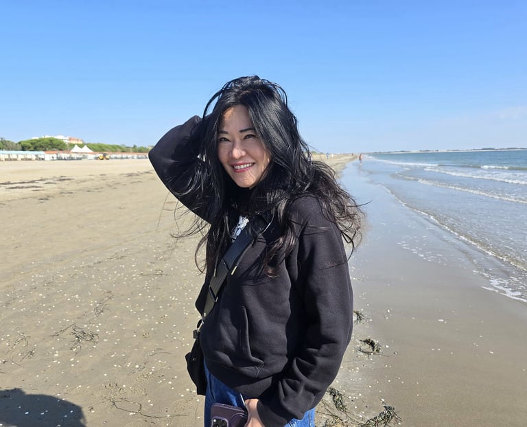 一年四季裡,我最喜歡的就是「秋天」。秋天看似是結束,其實是另一種開始。在 Lido 的海邊,風吹來,涼涼的,很舒服。海水對我來說有點冰冷,卻還是有人勇敢地在裡頭游泳。沙灘上的花還在開,葉子慢慢轉紅,蝴蝶依然自在地停在花上。有些落葉甚至變成優美的白色。看著這些小小的景象,總讓我很感動,因為生命還在,好好地在。而我,也幸運地活在這個當下。