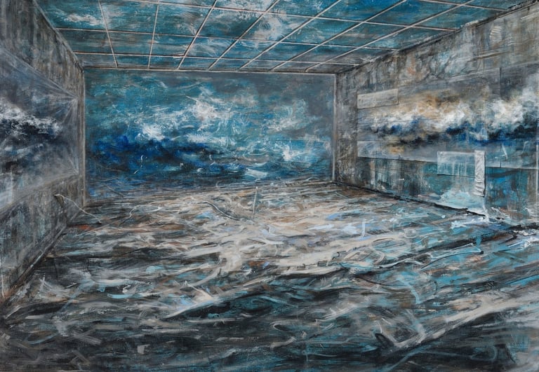 我想,這也是我特別欣賞來自阿根廷的Alberto這位畫家的原因吧。他所描繪的世界,是形而上的,是比天空更深更寬廣的國度;那裡是無拘無束的,那裡是自由自在的。他的靈魂穿越他的畫室,飛翔在自由自在的國度裡。《創造天堂》這一個系列,我覺得很美妙,於他而言,自由自在的世界就是天堂,天堂並非遙不可及,而是可以由自己創造!