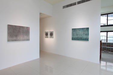 選擇膠彩(礦物顏料)作畫的林靖子,以畫面中的肌理、筆觸與水痕,緩緩述說著她對於這個世界的愛與感知,也藉著精準細膩的表現能力,呈現出恬靜安適的空間感及通透的空氣感。