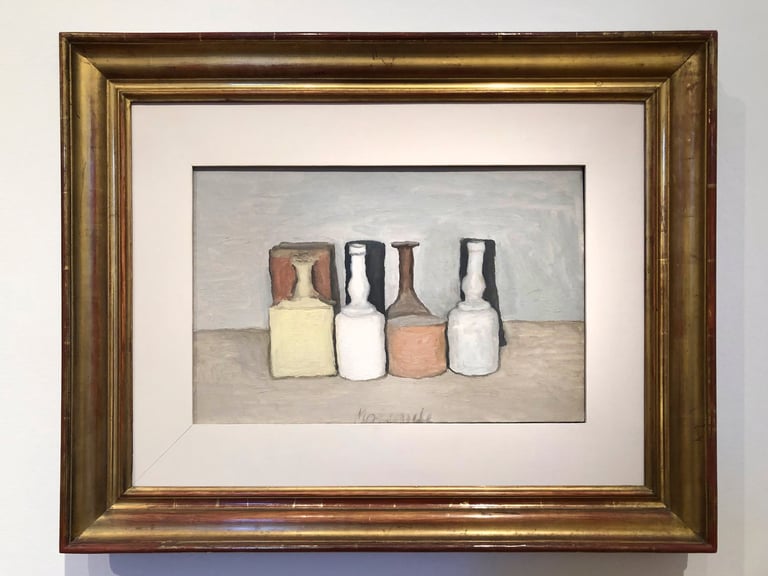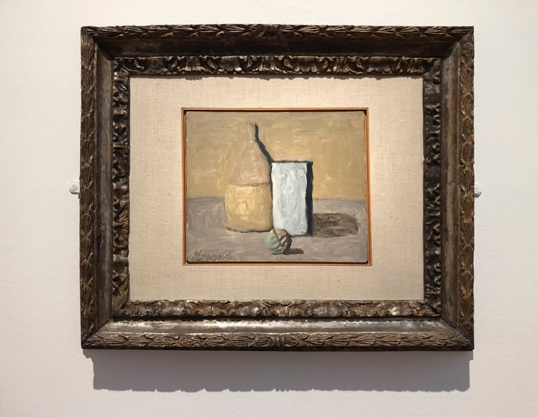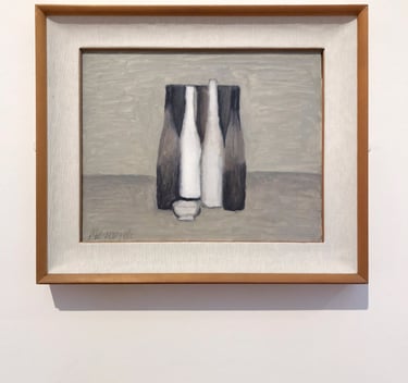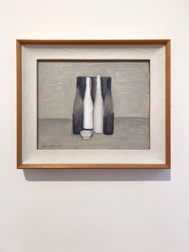 這一次的藝術行旅,我再一次去思考莫蘭迪的藝術,感受到靜謐的空氣中飄散而來的靈氣,我想:莫蘭迪之所以非常了不起,是因為他花費了畢生的時間和精力,悟出從寫實轉變為精神表達的創作過程,我認為這也是一位畫家發展為大師的必經之路。