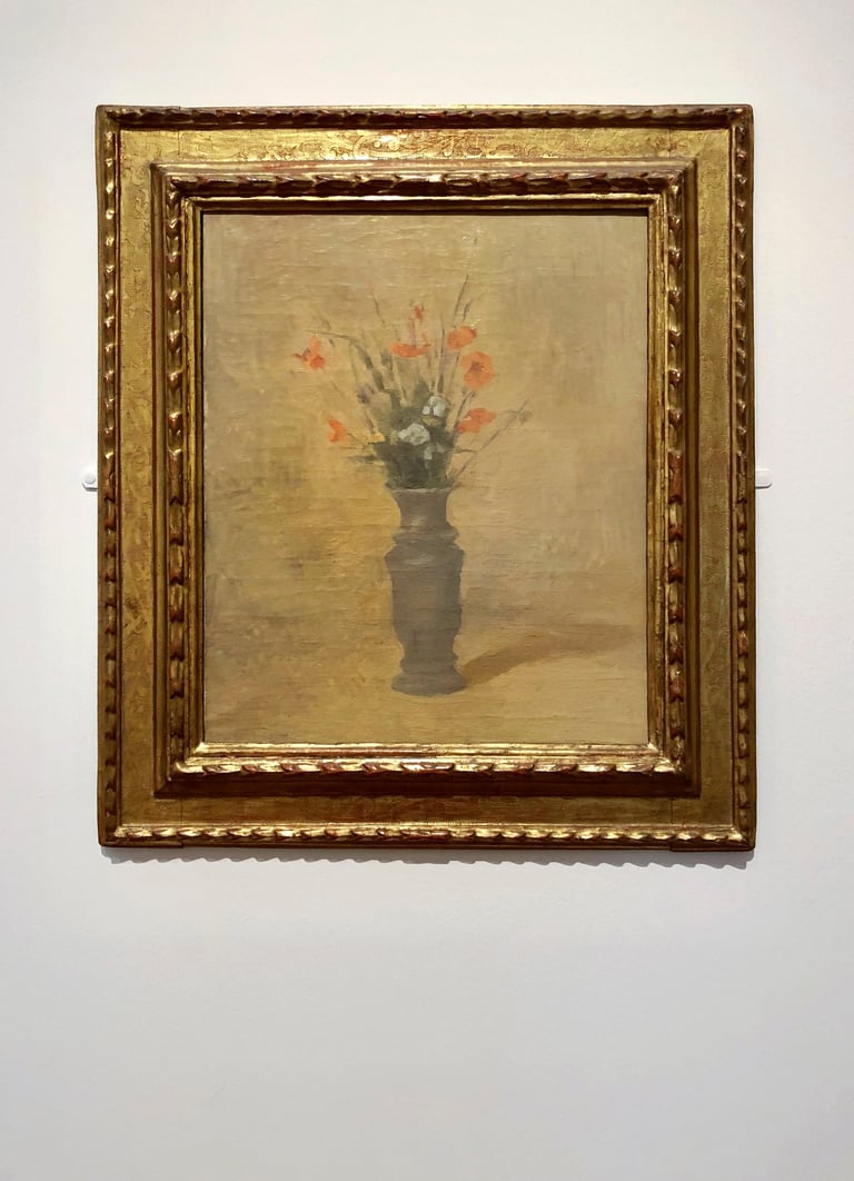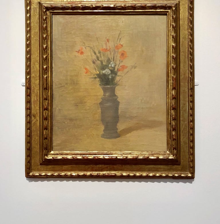 眾所皆知,莫蘭迪的繪畫主題大多是瓶罐等靜物,此次展覽也展示了一個花瓶,這個花瓶經常出現於他早期的作品中。據說莫蘭迪很愛惜這一個花瓶,即使在後期這個瓶子已經不出現在作品裡,但他還是一直珍藏在家中。我仔細盯著這個花瓶,想像著莫蘭迪繪畫的模樣,心中充滿了佩服!因為他把這些看似微不足道的生活物品賦予了極大的精神性,使得這些沒有生命的物品栩栩如生,並同時讓觀眾深深地感受到藝術家衝動奔放的靈魂。