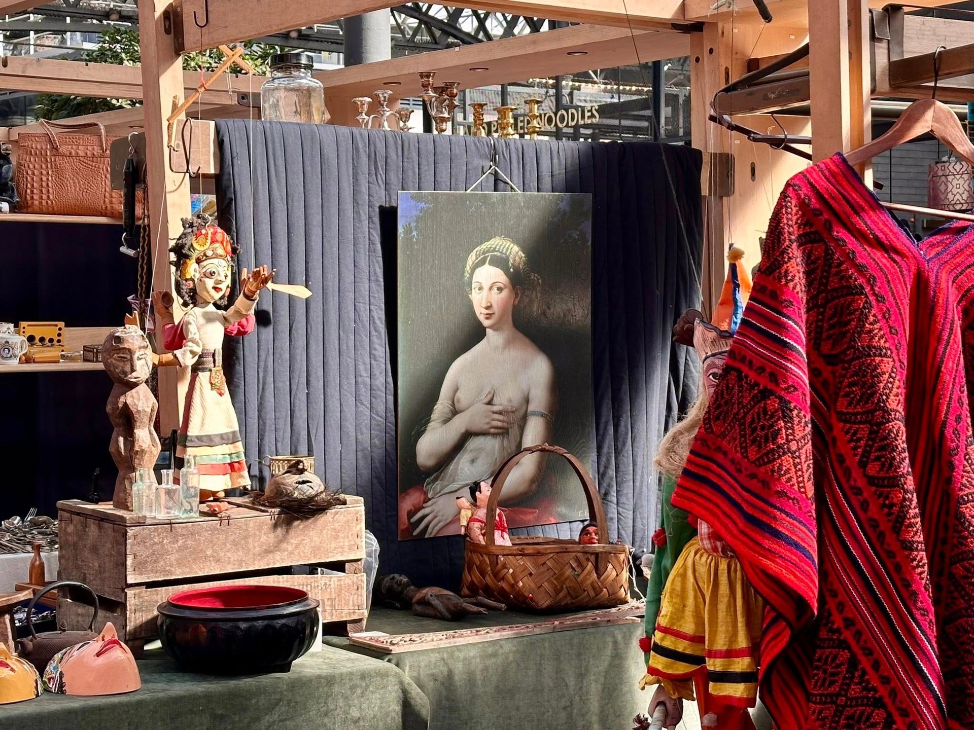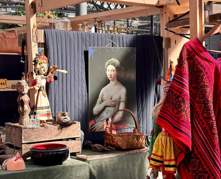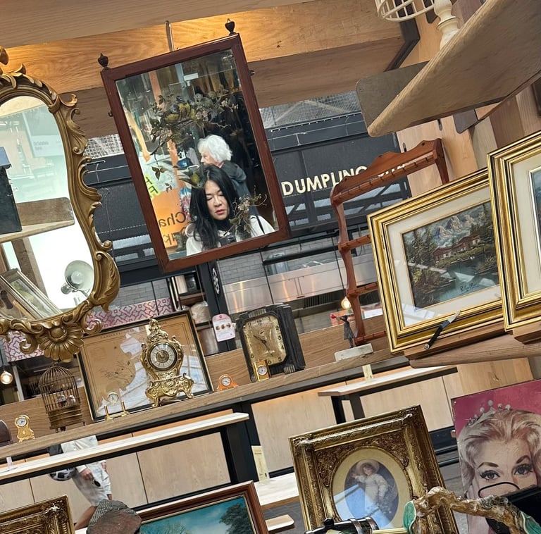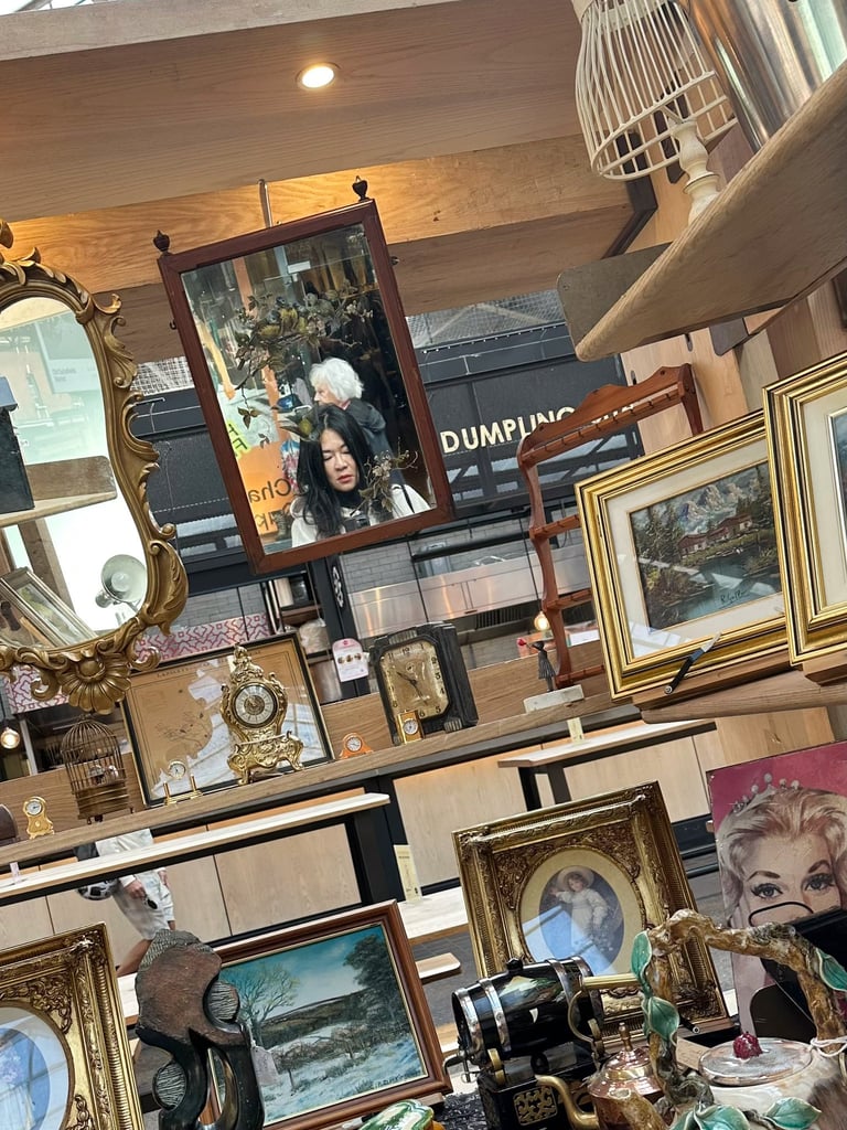 這個市集,只要我人在倫敦,幾乎每週都會來。沒有特別想買什麼,只是習慣走一圈,看看時間留下的痕跡,見見一些熟悉的面孔。老相片、銀器、地圖、鏡子、徽章、小玩具、舊書和飾品⋯⋯這些物件靜靜地待著,各自擁有一段未完的故事。我在一面掛著的老鏡子裡,看見了自己。那一瞬間,彷彿在一堆舊物中,遇見了某個時間之外的我。好好玩,也好幸運,因為我的人生,總能走進不同的文化,觸摸各種靈魂的產物。