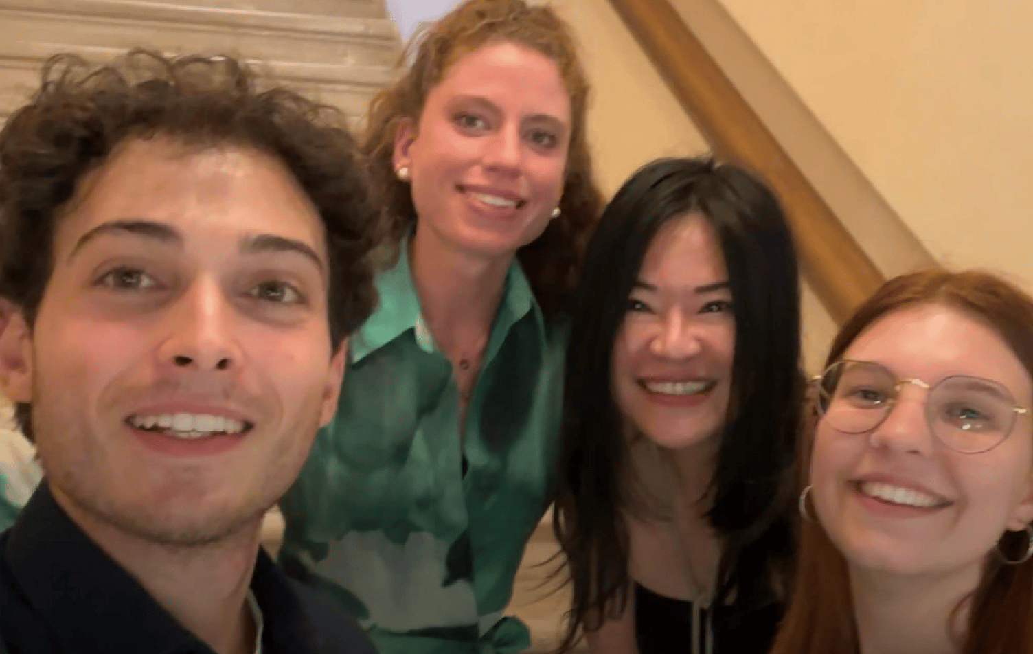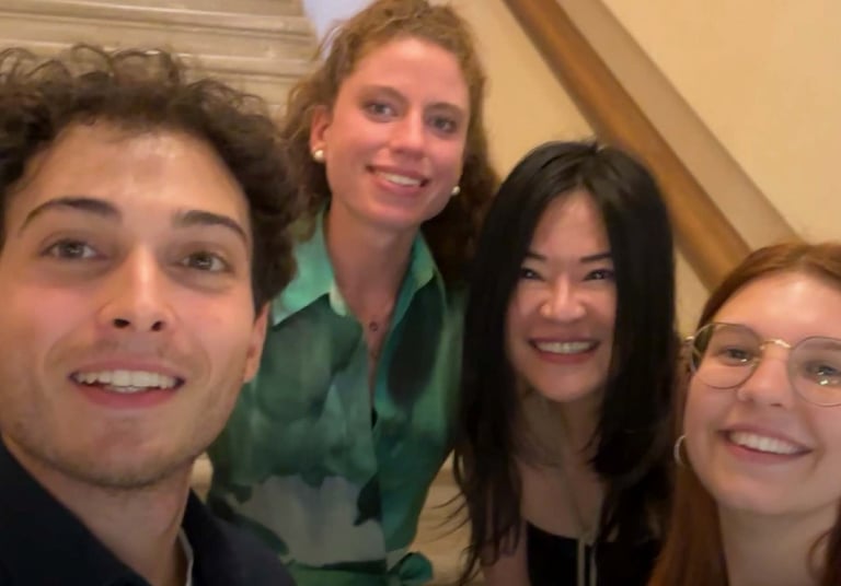 活動歷時兩個多小時結束後,我和展場助理Alessio、Marta、Zoe一邊享用蛋糕和酒,一邊自拍慶祝這次活動的圓滿成功。接著,我們立即投入討論即將在9月30日下午5點半舉辦的另一場公開活動。
