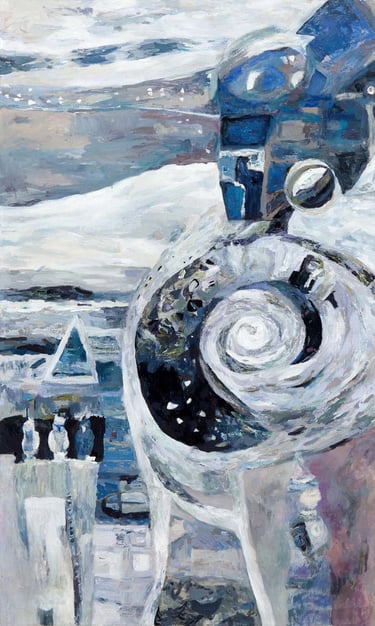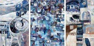 Safina Ksenia, Composition - V - reflection (Left), Composition - V - manifestation (Middle), Composition - V - transform (Right), Oil on Canvas, 2014。
