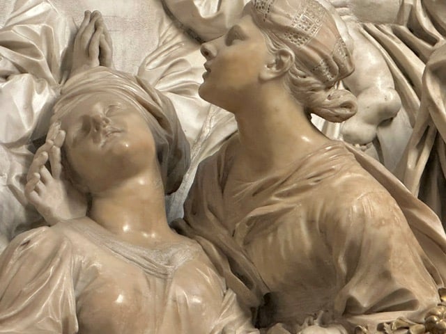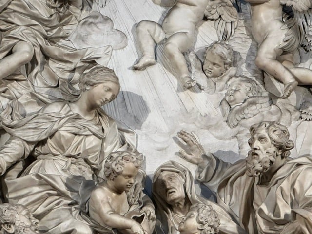 我有些朋友不相信這是真實的歷史,但我寧願相信它是真實的。特別是聖艾尼西在這裡所展現的形象深深地打動了我——她不再只是柔弱的殉道少女,而是堅貞不屈、超越肉身的靈性象徵。教堂內的雕塑與壁畫層層堆疊,視覺與信仰交織,令人震撼。