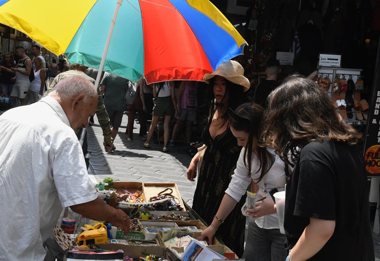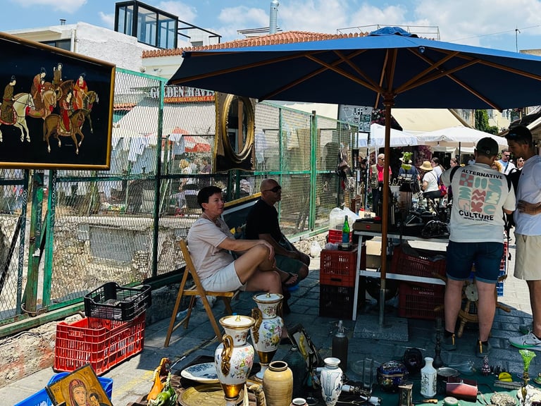 那天在古董市集,地板的溫度透過拖鞋直直往上傳,整個身體都熱了起來。但畢竟是第一次到希臘,我總想替自己帶點紀念品回家。