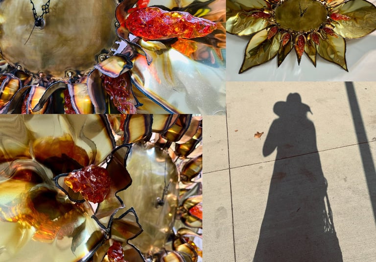 或許正因如此,我對美的追尋從未停止。我熱愛藝術,也熱愛那些被時光雕琢的珍貴之物,因此「南十字書屋」成了我心靈的另一個歸宿。每當遇見喜愛的古物、首飾,我便會為書屋購藏,期待將這份美好與有緣人分享。去年,在美國賓州一位古董商友人處,我發現了一座令我傾心的時鐘:一件美國中世紀野獸派風格的掛鐘。其黃銅面板承載歲月痕跡,花朵的線條恣意奔放,彷彿生命的熱情在時光中閃爍。我渴望將它掛在自己的家中,然而,我沒有一個真正的「家」可供珍藏。
