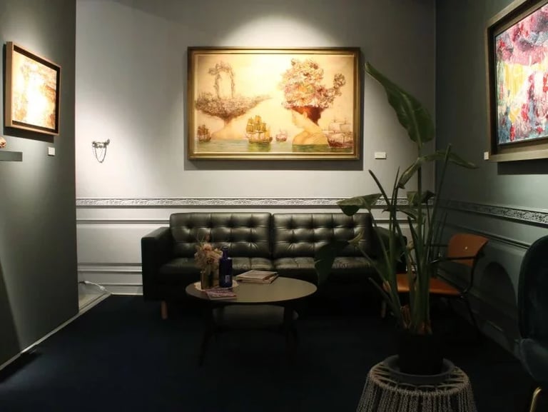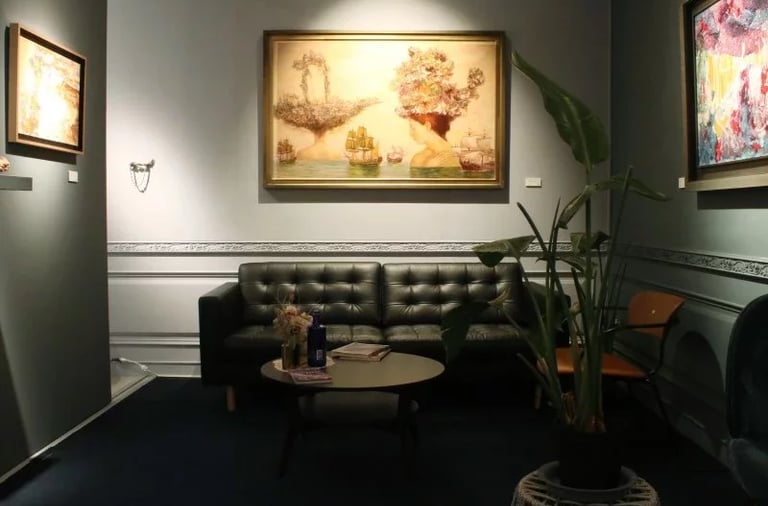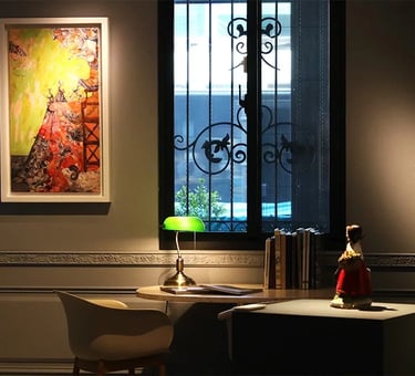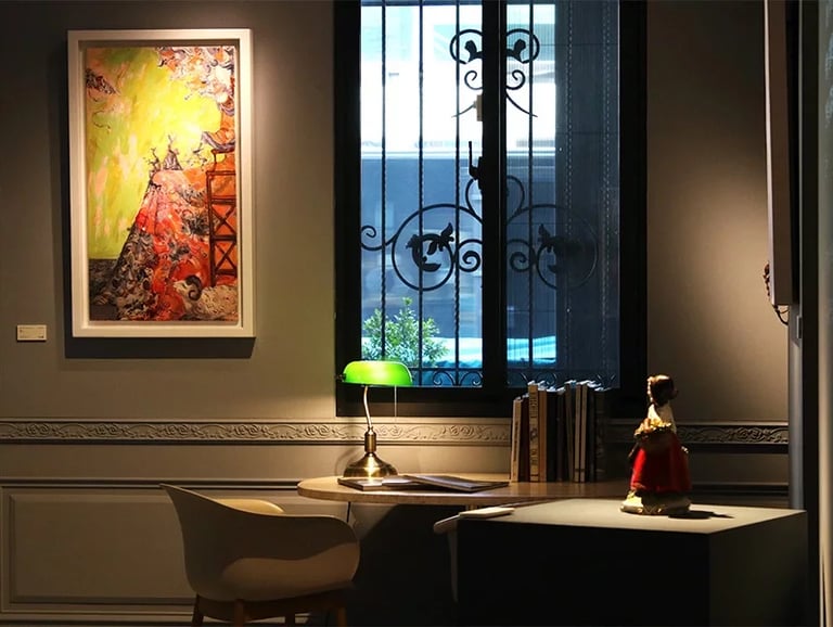 除了展示涵藝術所經紀的藝術作品之外,在書屋中也能看到許多首飾、擺飾和古董等藝術品,這些展示品都是創辦人親自從國外選品帶回國的,將畫作和古董藝術品同步陳列就是希望透過不同形式的藝術品與觀展人產生更多的交流機會。