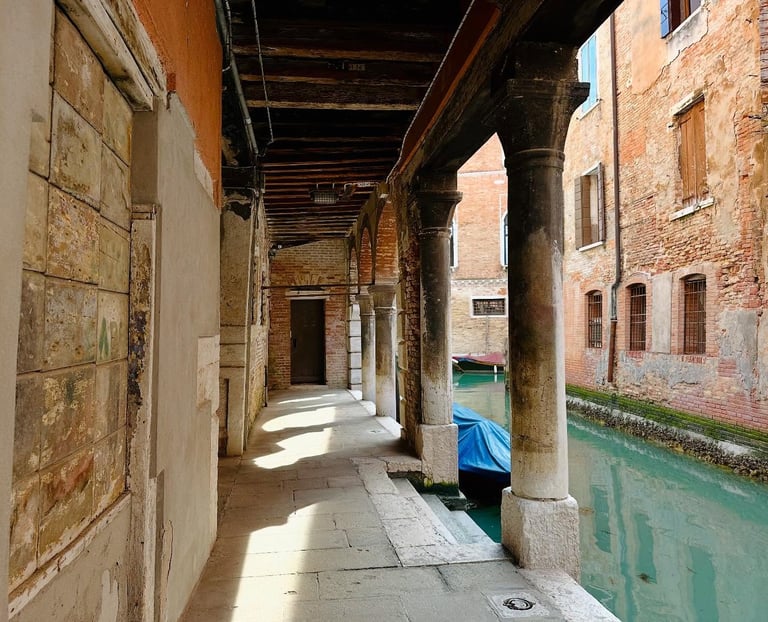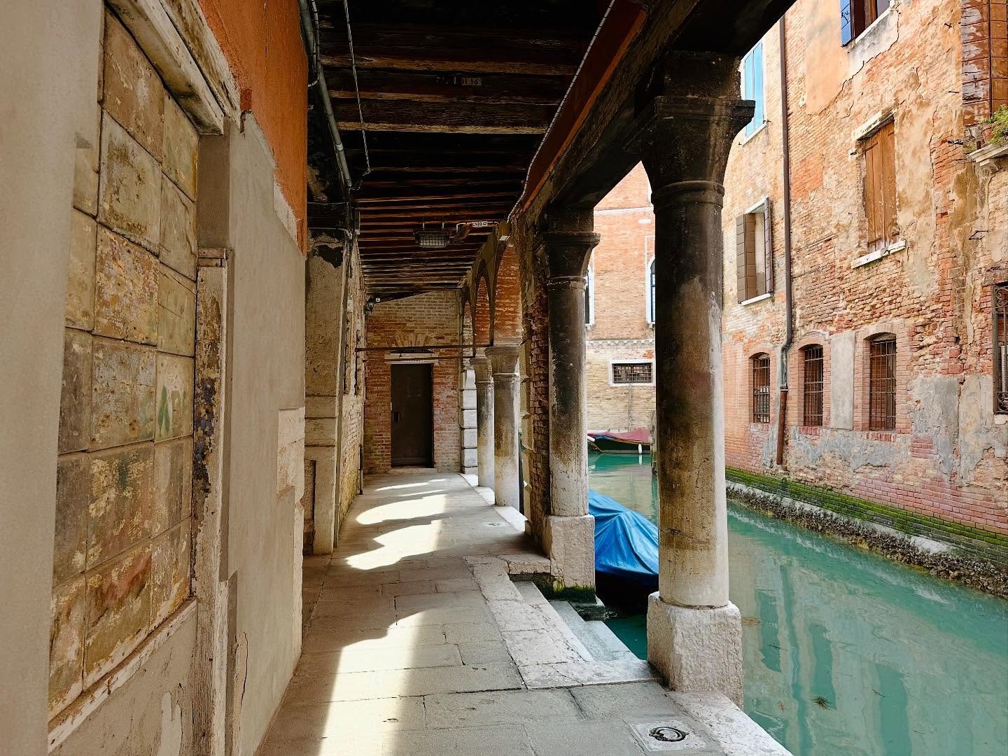 威尼斯的週日總是比較安靜,沒有週五和週六那麼多觀光人潮,整個城市感覺舒服多了,連空氣都像變輕了。我慢慢地走在石板路上,陽光從小巷和天井的縫隙灑下來,在這裡,我真的總是忍不住一直拿手機拍照!
