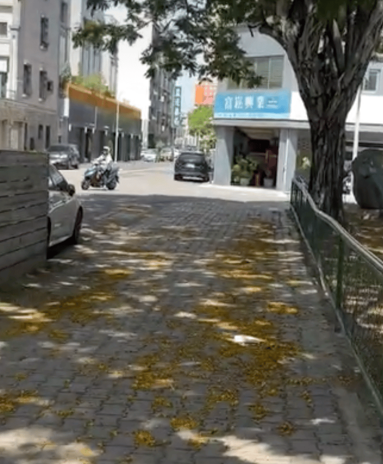 Passeggiando per le strade di Tainan, sono stata incantata dai fiori gialli caduti sul sentiero.