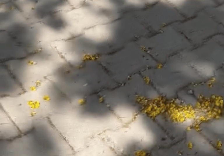 Erano i fiori del Cassia Fistula, caduti silenziosi come una pioggia d’oro d’estate.
